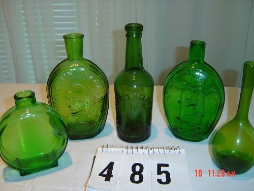 Lot 485 (5) PIECES OF GREEN GLASS - Ben Franklin, Success Railroad, Newport Brewery